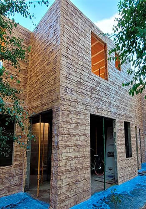 Spre deosebire de zidăria clasică, această metodă presupune aplicarea unui strat de beton direct peste un suport (zid existent, panou, structură de beton armat sau BCA), urmată de decorarea manuală cu matrițe și vopsele speciale.